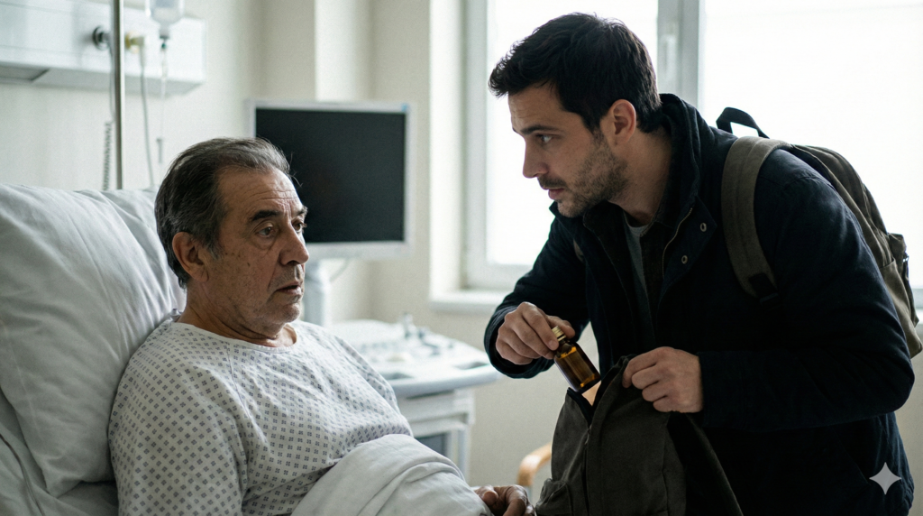 Ao ver o estado de Francisco, ele tirou um frasco da mochila e disse: “Chico, eles querem te operar porque lucram com a doença. Em Israel, no Monte Sião, nós usamos isso para ‘religar’ as pernas de quem já tinha perdido a esperança. Cancele a cirurgia e tome isso por 5 dias.”