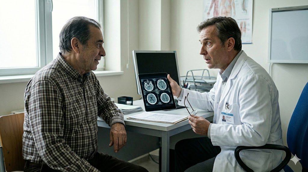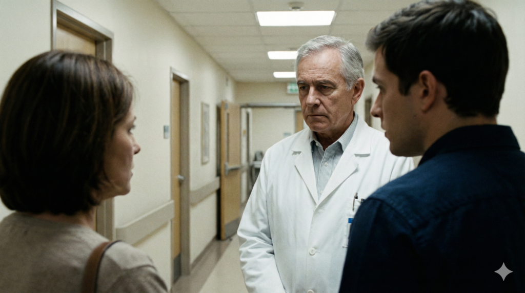 Foi então que o chefe da equipe de neurocirurgia chamou a família para uma conversa definitiva no corredor.
