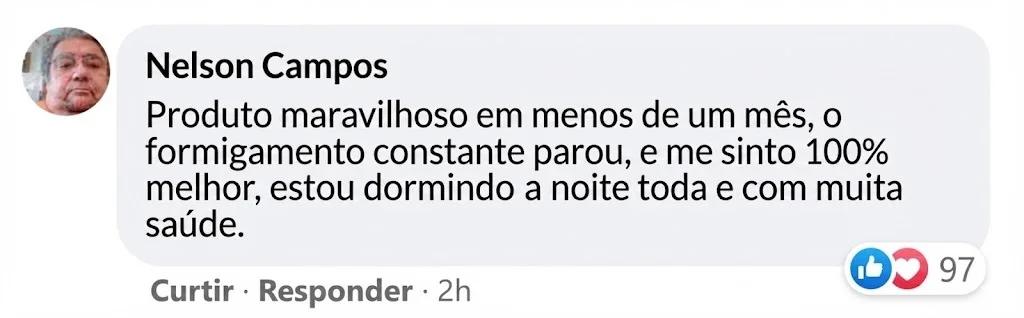 Bisglicinato de Magnésio e Vitamina D3: Esse mineral essencial acalma os espasmos nervosos e relaxa a musculatura tensa, acabando com as cãibras noturnas e a sensação de “choque”. Junto com a Vitamina D3, ele blindam o sistema nervoso central, impedindo que a neuropatia avance e devolvendo a firmeza para caminhar sem medo de cair.
